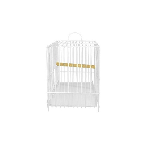 JAULA HORNEDA, CON FONDO BLANCO, CUENTA CON UNA LAMINA GALVANIZADA PARA SU FACIL LIMPIEZA VIENE CON BEBEDERO, COMEDERO Y DESCANSOS PARA LAS AVES. MEDIDAS ALTURA 29cm FRENTE 34cm FONDO 23cm