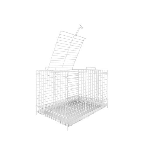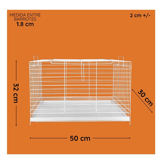 JAULA HORNEADA DE FONDO BLANCO CON LAMINA GALVANIZADA, SE ABRE POR LA PARTE DE ARRIBA PARA MAYOR COMODIDAD. MEDIDAS ALTURA 32cm FRENTE 50cm FONDO 30cm