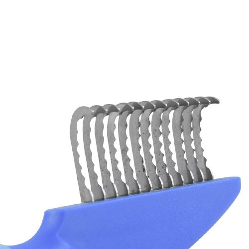 El peine rompe nudos curvo de Fancy Pets es una herramienta efectiva para remover esteras y desenredar el pelo anudado. Diseñado con 12 navajas curvadas con cantos dentados que permiten trabajar fácil y proteger la piel y el manto de la mascota. Con sus dientes de acero inoxidable, el peine deshace los nudos más difíciles de desenredar.